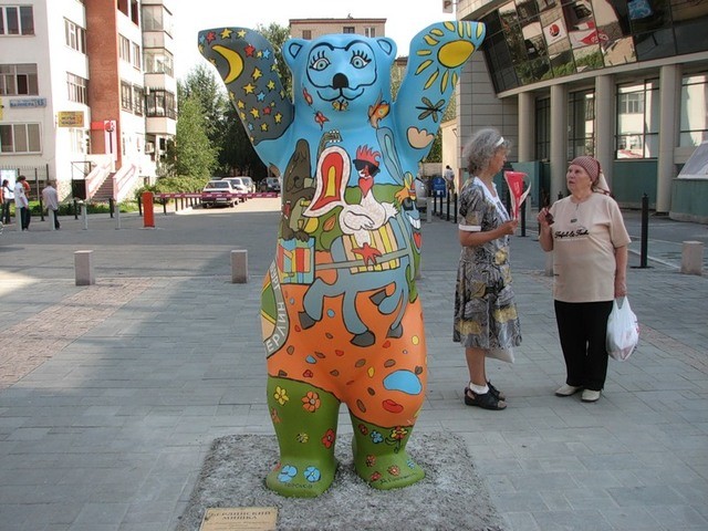 Идея создания в Екатеринбурге Берлинской медведицы принадлежит Ренате Шимкорайт. Дело в том, что в мировых столицах медведи обычно стоят не по одному, а небольшими группами: есть и медведи, и медведицы, и медвежата. Они все в разных позах: есть танцующие на задних лапах, есть на передних, есть идущие вприсядку.